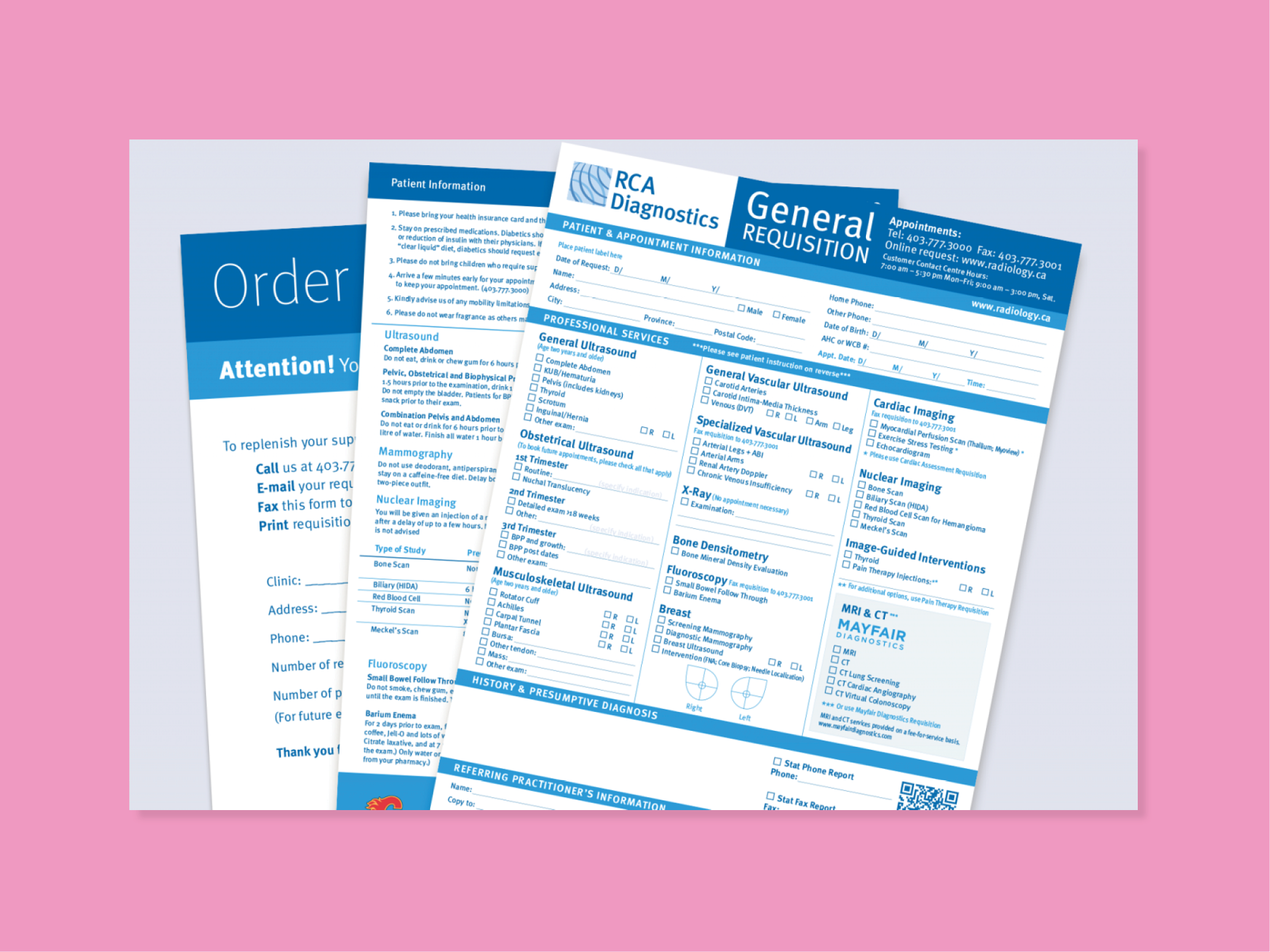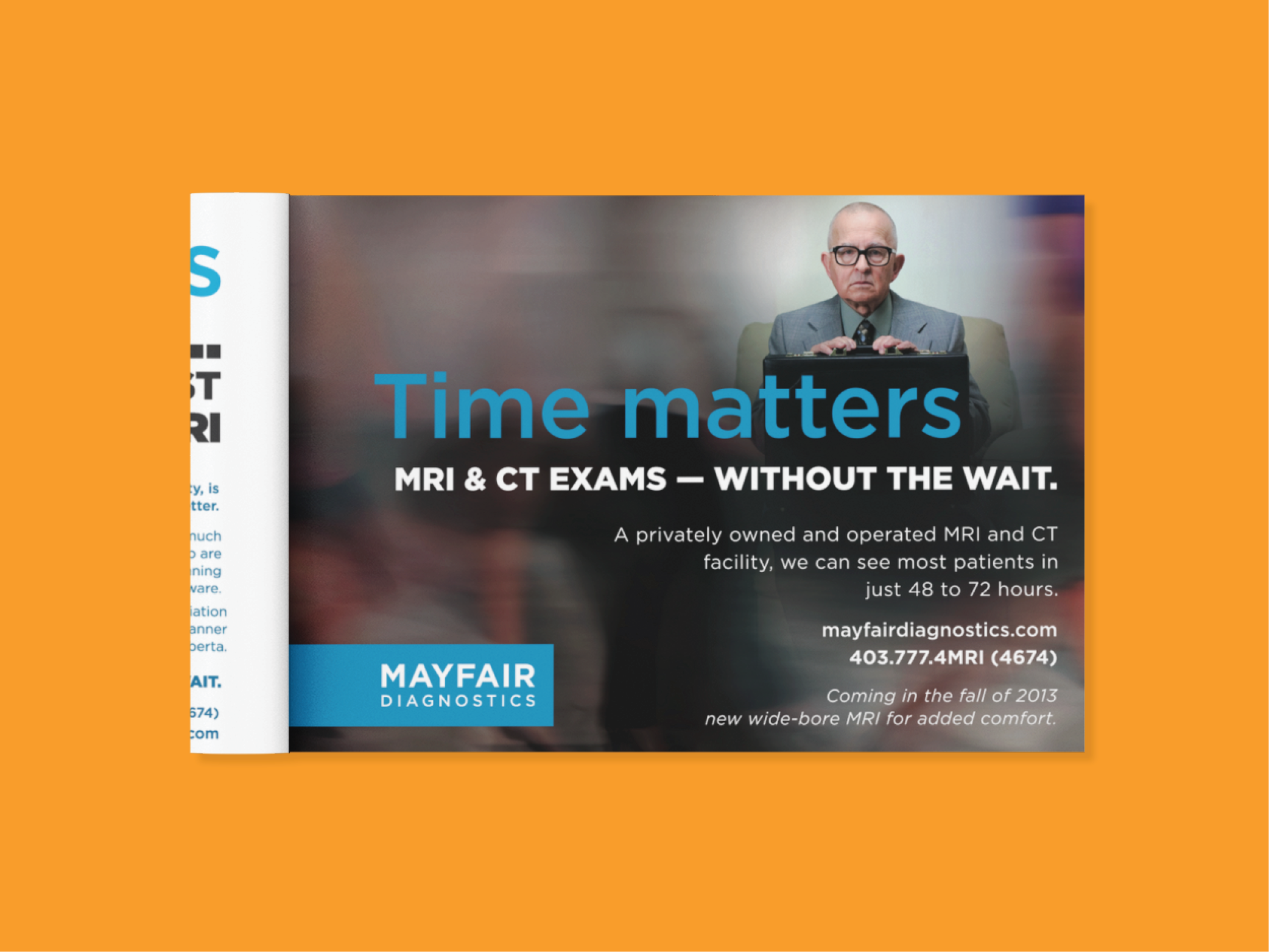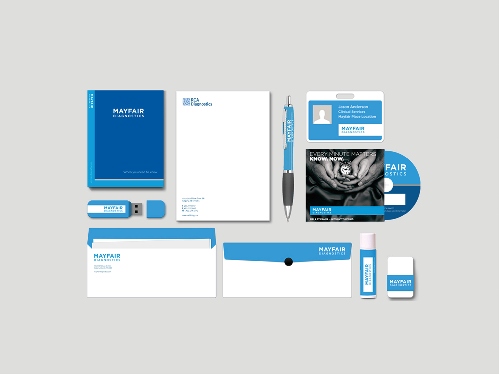 Rebranded Mayfair Diagnostics — art direction / concept development, designed brand identity and visual guidelines, brand management, developed advertising campaigns, logo design, stationary design, sourced and coordinated external and internal suppliers and vendors.